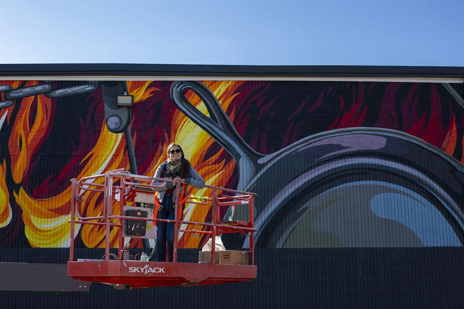 Designed for Lodge Cast Iron in their hometown of South Pittsburg, TN. Showing the life of their heirloom product from the forge to the home, this mural greets their employees at their 100+ year old foundry.